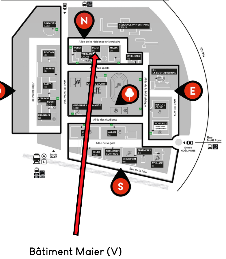 Par les transports en commun : Prendre la ligne A du RER, direction Saint-Germain-en-Laye, et descendre à la station "Nanterre Université"